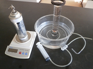 1年生理科では、2学期最後の実験として、「空気の重さを調べる」実験を行いました。スプレー缶に注射器で空気を押し込んで、その押し込んだ空気をメスシリンダーの中に出して、「体積」と「重さの差」を求めます。重さを調べるのに精密電子てんびんを使うのですが、息を吹きかけるだけで値が変化してしまうような微妙な機器なので、測定が難しく、計算がうまくいかない班もありましたが、正確に測定することの大切さを感じることができたと思います。これで物理分野は終了で、3学期は地学分野である「大地の成り立ちと変化」に入ります。