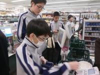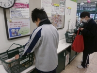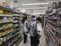 体験で近隣のスーパーに買い物に行きました。今回も、各家庭でそれぞれの生徒に応じた課題を設定して臨んでいます。買い物リストの項目には、野菜、清掃用品や台所用品、洗剤、文房具、調味料、乾物、パスタやルウなどがありました。以前に比べると、売り場の様々な棚のところへ行き、何がどこにあるのか、どの分類のところに並んでいるのかを知ることができています。また、商品を手に取る前にメーカーやサイズ、内容量、値段などの表示を確認し、慎重に選ぶことにも慣れてきた様子です。レジでは、財布の準備や小銭の支払いがスムーズにできるように心がけています。2年生の体験・買い物は今回で最後ですが、今後も課題を意識しながらスキルアップに努めていきたいと考えています。