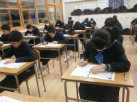 今年度3回目の英語検定を実施しました。全体で約100名の生徒が検定に臨み、高校レベルと言われる準2級以上には39名が挑戦しています。今回は今年度最後の英検ということもあり、生徒は対策に力を注いできました。また本校では、オリジナルの校内検定WIT(Words and Idioms Test=英単語・熟語検定)も実施しており、生徒は目標をもちながら日々語彙力を強化しています。今日は一人ひとりがその成果を発揮しました。多くの生徒が合格を勝ち取り、来年度へのステップアップができることを期待します。