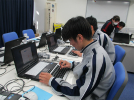 生活教養では、生活上で必要な知識を身につけたり、作業力を向上させるためのカリキュラムを日々実践しています。特に今年度は「キャリア教育」を重点にしているので、色々な職業を意識し作業もできるだけ幅広い分野で取り組んでいるところです。今日はPC操作としてタイピング練習を行いました。画面上にパソコンの基盤が表示され、指示されたアルファベットをローマ字入力で打ち込み言葉もしくは文章にしていくというものです。しりとりゲームのようなものもあり生徒たちは楽しみながらも集中して取り組んでいました。今後、卒業文集の打ち込みも行う予定なのでこの体験を生かしていきます。