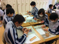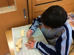 1CDEの実習「木工」では、プランターの製作を進めています。今回から道具を使用し、本格的な作業が始まりました。のこぎりでの木材の切断や、紙やすりで切り口を平らに仕上げる作業を行い、進みの早い生徒はげんのうを用いて杭打ちをしました。使い慣れない道具ばかりですが、集中力を維持して作業する様子が見られ、関心を持って取り組んでいます。