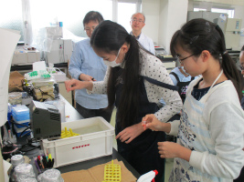 東中サイエンス・ラボ(希望者対象)を実施しました。今回は園芸植物育種研究所に行き、ピーマン研究の第一人者である先生による講義では、スーパーなど身近に流通している果物や野菜の品種改良の実際についてお話をして頂き、植物からDNAを抽出する実験を行いました。生徒達の感想からは「DNAは実際に取り出してみると繊維状のフワフワしているものでした。とても貴重な体験ができて良かったし、楽しかったです。」「友達に誘われて、初めて参加しました。マイクロピペットを使っての実験に興奮しました。参加して良かったです。」などの声が聞かれ、普段は中々できない経験をすることで、理科に対しての興味がより深まったようです。