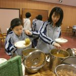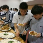 卒業まで残り数日となった3年生。本日の給食は学年全員でのビュッフェ給食です。A~E組の横割りの班で、思い思いの話をしながら美味しいメニューを堪能しました。この学年の明るく楽しい雰囲気の溢れる時間は生徒たちにとって忘れられないものとなったようです。