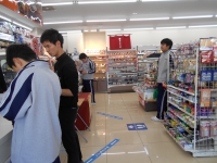 3年生になって初めての体験の授業は、コンビニエンスストアでの買い物でした。新しいクラスで行動すること、校外へ出る際のマナー、安全への配慮も含めての学習です。コンビニはその名の通り、「〇〇が無いので買って来よう」という際に便利なお店です。今回、各家庭で挙げてもらった買い物リストも、ティッシュ・消しゴム・マスク等日用品が多く実戦的でした。スーパーとは違ってコンパクトに商品が並べてあるので、棚の上から下までよく探す必要があり、目的の物を見つけるのにやや時間がかかっている様子でした。これは「何がどの辺りにあるのか見当をつける」という練習をすることで慣れてきます。また、予算と値段の比較をすることは、5月のグアム学習でお土産を買う際にも必要なことです。今年度も、スモールステップでスキルの向上を目指していきます。