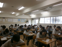2年生では、「福祉」についての学習を進めています。今回は、視覚に障害のある方々が触って読む点字について理解を深めました。 まずは、点字の6つの点の並び方や決まりを確認したうえで、実際の文章を読むことに挑戦しました。点字の五十音表に照らし合わせて、目で確認すること、さらに点字を指で触って コミュニケーションすることの難しさを実感したようです。