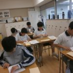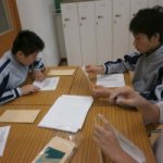 生活教養では、言語学習や作業活動を通じ社会自立に向けた教養・知識や技能を身につけています。今週はプリントを折る作業を中心に行っており、3つ折りにもチャレンジしました。3つ折りは、社会に出てもチラシなどを封入する時によく使われる折り方です。プリントに印をつけず、おおよその目安で折るよう意識しましたが、まだ慣れていないせいか、ずれてしまうことも多かったようです。練習するうちに丁寧に折れるようになるので今後も継続していきます。