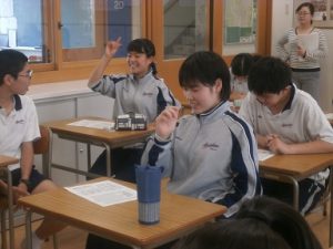 本日は、耳の不自由な方への接し方について学習した上で、手紙による自己紹介を行いました。手話や指文字に対する生徒たちの関心も高く、皆意欲的に練習し、楽しく発表を行っている姿が印象的でした。この学習を機会に、より手話に関心を持ち、実生活の場でも使うことができればと思います。