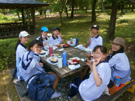 山荘合宿最終日は、山荘出発前に班対抗のクイズ大会、出発後には、曽根丘陵公園で東日本最大級の前方後円墳(銚子塚古墳)の見学を行い、帰校しました。この合宿を通して、1年生は一つのクラスのような一体感を持てました。またABクラスは自分で学習する自立心、CDEクラスは協力し合いながら自信を深めることができました。この経験を今後の学校生活に活かしていきます。