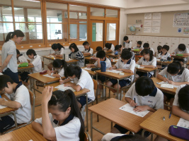 本校独自の教科である『生命科』は、「自分の存在の重さを知り、他の人の重さを感じることができる」という理想の生徒像を目標に、実施されています。本日の『生命科』は、友愛の精神のもと「自閉症について理解を深めよう」というテーマで進められました。自閉症とは何なのか、その主な特徴について学んでいくことで、少なからず理解することができたようです。