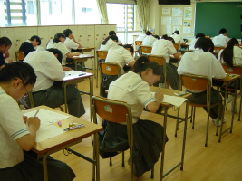 1学期中間テストの期間になっています。1年生にとっては初めての定期試験。清里山荘合宿で立てたプランをどう実行できたか、その成果を見る機会になります。3年生にとっては「一回一回が入試のつもりで」という意識で臨むことが掲げられたテストでもあります。画像は2年生AB組とCDE組の様子です。