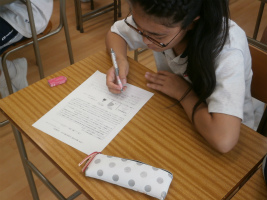 本校独自の教科である『生命科』は、「自分の存在の重さを知り、他の人の重さを感じることができる」という理想の生徒像を目標に、実施されています。本日は自閉症理解の2回目として、東田直樹さんを紹介していきました。東田さんは自閉症でコミュニケーションが苦手です。しかし、パソコンや文字盤を通して、自分の感じた事や思いを伝えることができます。自閉症の人たち特有の感覚世界に初めて触れた生徒たちからは、驚きと共にもっと知りたい、理解し合いたいという声が多くありました。
