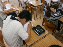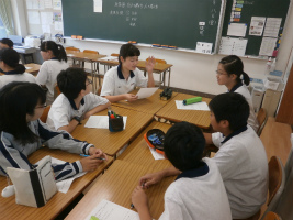 本校独自の教科である『生命科』は、「自分の存在の重さを知り、他の人の重さを感じることができる」という理想の生徒像を目標に、実施されています。本日は前回のチェックシートの結果を用いて、自分の考え方や感じ方を班になって発表し合い、お互いがどのように感じているのかを確認しました。生徒たちからは「自分は別に気にしない事でも、それを嫌だと感じる人がいると知ってので、今後はそのことを忘れず相手の気持ちを考えながら関わっていきたいと思いました。」「自分とは異なる意見の人の理由を聞くと“確かにそう思うかも。”と感じることがあったので、今後は自分が嫌だと思うことがあったときは、それを相手に伝えてみようと思います。」など、他の人との意見の違いを認識し、理解を示す感想が多く見られました。