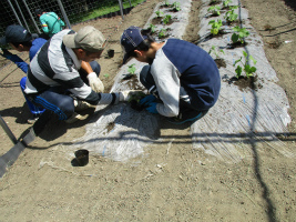 本日はチロル学園合宿2日目です。地元芦安の地域おこし協力隊のご指導をいただき、本格的な畑作業となり、大豆の種まきを行いました。これは「醤油の実」にするそうです。チロル学園内の畑では雑草抜きから畑を耕し、畝づくり、苗(キュウリ、ズッキーニ、ピーマン)を植えるところまで行いました。ハーブ畑ではミントを育てており除草を行いました。また、食後に食器洗いもして、生活スキルを高めるために頑張っています。