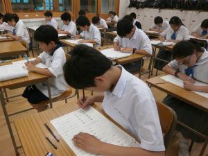 今年度第1回目となる漢字検定を実施しました。本校では、準会場として、年3回の漢字検定を行っております。10級から2級まで、総勢132名の生徒が受験し、試験開始まで勉強に励んでいる姿が見受けられました。それぞれの目標が達成されることを大いに期待しています。