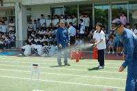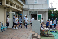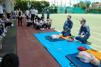 本年度1回目の避難訓練を行いました。地震発生後、家庭科室から出火という想定で、運動場へ避難しました。消防署の方からは、一昨日の大阪での震災を例に、災害に向けた備えの大切さについて改めてお話がありました。その後学年ごと分かれて、1年生は消化器を使った訓練・2年生は担架の使い方・3年生はAEDの実演を消防署員の方に見せていただき、実際に生徒自身も担架を使う体験をして有意義な訓練となりました。(防災部)