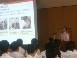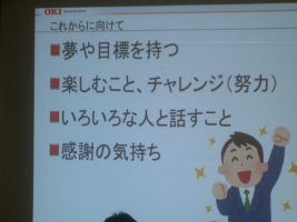 株式会社OKIワークウェルの方々をお招きし、『社会に出て働くために』という題で講座を開きました。「キャリア教育」を重点にしている今年度は、大きなテーマとして特に「様々な職業を知る」「良好な人間関係を築く」の2つを掲げています。今日は、ビデオでPC操作による業務内容や事業所での作業の様子を紹介していただいたり、実際に働いている方から仕事として得意としていることや体験談を話して頂きました。生徒たちにとって、集中力やコミュニケーション力がとても大切であるということが認識できただけでなく働くことに対する心構えにつながった有意義な時間となりました。
