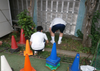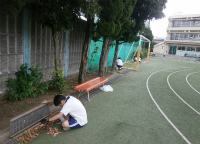 生活教養では、言語学習や作業活動を通して社会自立に向けて教養・知識を身につけていきます。来週に控えている校外学習「チロル学園合宿」に向けて校庭の草取り作業を行いました。合宿では農作業の一環として畑の草取りを行うので、スコップの使い方と集中を切らさず作業できるかをポイントに置きました。3年生になり作業への集中力も伸び、また友達同士で協力・分担しながら作業する姿も見られました。「スコップを使って根を切れているか」という技術面も定着しつつあります。