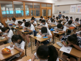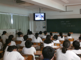 本校独自の教科である『生命科』は、「自分の存在の重さを知り、他の人の重さを感じることができる」という理想の生徒像を目標に、実施されています。今回は、いじめを扱ったドラマを視聴しました。クラスで実際にいじめが起きていると知った教師は、生徒を「いじめる子」と「いじめられる子」に割り振り、ロールプレイングを行います。「いじめる子」役の行為が周囲の歓声につられてエスカレートしたのに対し、「いじめられる子」役は「もしこんなことが続いたら、学校にも来たくないし、死んでしまいたいって思うかもしれない」と述べていました。このドラマを通して、各々がいじめに対する考えを深めることができたようです。以下、生徒の感想です。「だんだんいじめる側が楽しくなったのかやることがエスカレートしていって自分をコントロールできなくなっていました。いじめられる側もエスカレートしていくうちに笑顔が消えて嫌な気分になっていったのが伝わってきました。始めは軽い気持ちでもどんどんコントロールが効かなくなってしまうのが怖いと思いました。」「みんながいじめていると自分もいじめなきゃ今度は自分がいじめられるかもと思ってしまい、(いじめを)してしまうかもしれません。(いじめられると)頼れる人が誰一人いないので、本当につらいし怖いと思いました。」