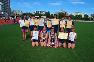 関東大会は14年連続出場となり6名が出場します。2年生関田さんと東さん、3年生大谷さんが100mに出場、3年生伊藤さんが走り幅跳びに出場します。共通4×100mリレーは東京代表として出場しますが、メンバーは3年生大谷さん、伊藤さん、齋藤さん、2年生東さん、関田さん、1年生椎名さんになります。