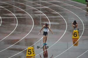 台風接近の影響で競技日程も大幅に変わり、すべての競技において予選、準決勝は行わず、すべてがタイムレースで決勝の一発勝負。時折、瞬間風速20mを超える突風が吹くなど、天候は悪化するばかり。選手もコンディショニングどころではない状況の中、よくモチベーションを保ちながら試合に臨んだというころは、武蔵野東の強さであると感じました。