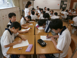 本校独自の教科である『生命科』は、「自分の存在の重さを知り、他の人の重さを感じることができる」という理想の生徒像を目標に、実施されています。本日の生命科では、「生命の定義」について考えました。「『生命』とは、『生きている』とは、どういう状態を指すのか」にというテーマについて思いつくままに書き出し、意見交換をしています。「心臓が動いている状態」「呼吸をしている状態」「感情・表情がある状態」「細胞分裂(成長できている)している状態」「生きたいと思っている状態」など、様々な意見が挙がりました。最後に生物学的な生命の定義に関する文章を読み、感想をまとめています。「生命」への想いは様々でした。以下、生徒の感想です。