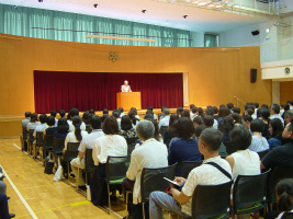 2学期保護者会を行いました。全体会では校長の話のあと、全国大会に出場した陸上競技部の夏の活躍を映像を見ながら報告しました。その後の保護者懇親会はそれぞれクラスごとに和やかな雰囲気で進行し、保護者の方々の親睦を深めることができました。
