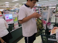 体験の授業では、先週に引き続き近隣のスーパーへ買い物に行きました。今回も各家庭で課題を設定して臨んでいます。たとえば、「野菜のバラ売りと袋入りの値段を見比べて買う」「カレーの材料を買う」「卵やパンなど柔らかなものを買い、バッグへのしまい方も気をつける」「予算と見比べて商品を選ぶ」「端数を支払う」「概数で支払う」などです。初めてバラ売りの野菜を袋に詰めた生徒や、先週もらった5%割引のクーポンを使ってみた生徒もいて、経験の幅が少しずつ広がっていることを感じます。