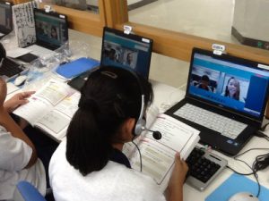 本校の英語教育は「使える英語」を目指して、日々の授業に取り組んでいます。2学期より1年生のオンライン英会話がスタートしました。初めは緊張している様子でしたが、25分間どっぷりと英語に浸り、濃い時間を過ごせたようです。週に1回のオンライン英会話の授業が更に活きるように、日頃の授業内でも音読活動や表現活動を重視していきます。