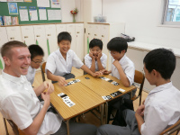ALTのマイケル先生とカードゲームを下校前のホームルームで行いました。
