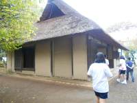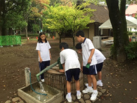 今回の体験学習は「江戸東京たてもの園」へ行きました。5人ずつ分かれて班ごとにコースを決め園内を見学。それぞれ見学した建物の生徒たちの感想を抜粋しました。「昔の民家では、囲炉裏火をみんなで囲んでボランティアの方の話を聞くことができました。昔遊びのお手玉も置いてありとても楽しかったです。」「実際に走っていた都電の車両に乗り、この時代は車両の中に扇風機が設備されていたそうです。」「昔の交番にも行き、巡査が宿泊できる設備も見学しました。」「井戸水をくみ上げる手押しポンプはたくさん動かすと水が出てきて驚きでした。」色々な視点で歴史的建造物について学ぶことができた充実した時間となりました。
