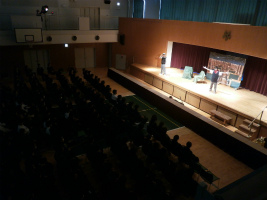 CDEクラスの劇リハーサル2回目が行われました。今回は例年の通り、展示等の準備を終えたABクラスの生徒が観客として鑑賞しました。本番を目前に控え、完成度を高めたCDEクラスの友達の演技に、ABクラスの生徒たちも大いに盛り上がり、拍手・声援を送ってその熱演を称えていました。
