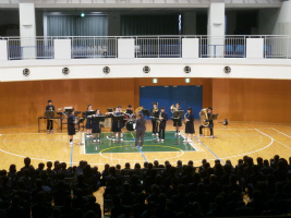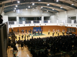 学園祭の開幕を告げるオープニングステージが、学園祭実行委員会の生徒進行のもと行われました。実行委員が作成したここに至るまでの準備の様子をまとめた動画でスタートし、有志によるステージ発表(ESS、ものまね、ギター演奏、吹奏楽、ダンスと器楽など)で大いに盛り上がりました。