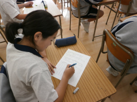 本校独自の教科である『生命科』は、「自分の存在の重さを知り、他の人の重さを感じることができる」という理想の生徒像を目標に、実施されています。本日の生命科では、将来の夢や目標についてアンケートを行いました。もう既に明確な夢を持っている生徒もいれば、まだ何が自分に合っているのか探している生徒など、それぞれの将来観が垣間見えています。また仕事・職業を選ぶ上で何を優先するかという問いに対して、「やりがい」や「社会への貢献度」「プライベートとのバランス」など、現実的な視点を持つ生徒が多く見られ、よく考えている印象を受けました。次回はこのアンケートを踏まえ、ディスカッションを行います。