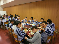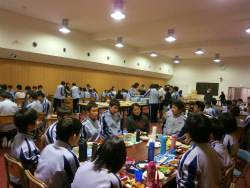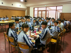 各学期に一度の、生徒たちにとってはお楽しみでもあるビュッフェランチ。中央には様々な食事が並べられますが、食事をのせるための台やテーブルなどのセッティングは、すべて生徒の力により行っています。1年生は、1学期の経験をもとにマナーに配慮して配膳が行え、2、3年生は準備や片づけも率先して取り組んでおり、上級生としての頼もしさが見られました。