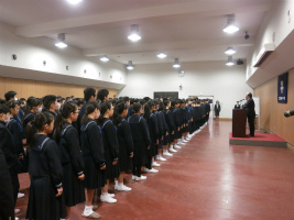 始業式が行われ、3学期が元気にスタートしました。心を整えることや自分を伸ばす意識について、校長先生から話を聞き、意欲を新たにすることができました。またその後、1・2年生は発表会練習や探究科のプレゼン準備、3年生は入試に向けて面接練習を行うなど、それぞれの学年で早速活動が始まっています。