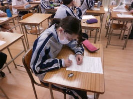本校独自の教科である『生命科』は、「自分の存在の重さを知り、他の人の重さを感じることができる」という理想の生徒像を目標に、実施されています。本日の生命科では、先週に引き続き、「人はなぜ働くのか」という問いをテーマにした映像を視聴しました。「人間の究極の幸せは4つ。愛されること、ほめられること、役に立つこと、必要とされること。」喜びを感じて働く人たちの姿は生徒たちの心にも刻まれたようで、「働くことで人に幸せを与え、自分自身も究極の幸せを得たい」という感想が多くありました。