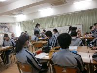 2年生の生命科では、「命の尊厳」をテーマに学習を進めてきました。今回は単元の最終回として、「ヒトはなぜヒトを殺してはいけないのか」という問いについてディスカッションを行うとともに、各自で考えを深めました。自分の意見を書いた後グループになり、話し合って説得力のあるひとつの意見にまとめます。簡単に答えの出ない問いですが、どの班も活発な議論が交わされていました。最後に「なぜ命は尊いのか」について書く時には、これまでの学習を振り返り、自分の言葉を使って考えを深めていました。学んだことを自分自身へと還元し、これからの人生を生きて欲しいです。