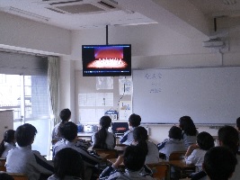 先日行われた発表会のダンスと武道の映像を鑑賞し、演技を振り返りました。生徒たちの感想からは、自身の成長や部活との両立など実に様々な観点からこの発表会を振り返っていました。中でも皆に共通していたことは、大きな舞台に立ちながらも精一杯やりきることができたという達成感でした。努力が自信に変わっていくことを強く意識し、次年度ではより一層の成果を出したいとする意欲が感じられる、実りある振り返りになったと感じています。