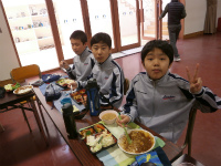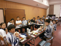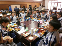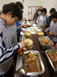 今年度最後のビュッフェランチ。テーブルセッティングは1,2年有志が20分ほどで準備をしてくれました。皆が楽しみにしているビュッフェランチのマナーも守れるようになり、おいしく楽しいひとときでした。家族と外食をする際もマナーを守り食事を楽しんでほしいです。