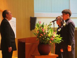 担任の先生が一人ひとりの名前を読み上げると、しっかりと元気よく返事をし、中学校生活の第一歩を力強く踏み出しています。