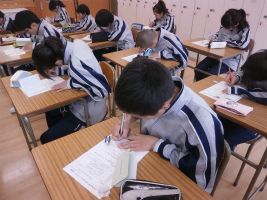 本校独自の教科、『生命科』は「自分の存在の重さを知り、他の人の重さを感じることができる」生徒になることを目標にしています。第1回の今日は、この目標に向け一年間をかけてどのように『生命科』を学んでいくのかを確認しました。また生徒手帳にある、創立者北原キヨの「生徒の皆さんに贈ることば」から、武蔵野東中学校の校訓をより深く読み込んでいます。気持ちを込めて校訓を書き写し、これからへの決意を新たにしていました。
