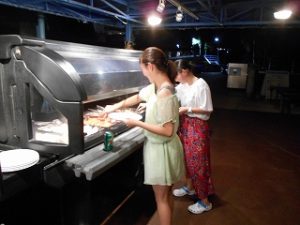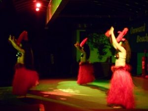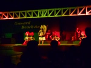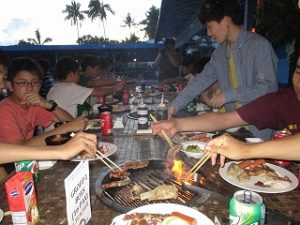 グアム滞在3日目の今日は、BBQとダンスショーのディナーがありました。BBQでは炭火で焼いた香ばしいボリューミーなお肉がおいしかったという感想が多くありました。ポリネシアンダンスショーでは、女性ダンサーによる普段では見ることのできない踊りや衣装に魅了され、皆楽しんでる様子でした。何人かの生徒は舞台に誘われて、舞台の上で一緒に踊ったりもしました。一番上手にダンスができた人には、レイ(花飾り)がプレゼントされました。グアムならではの夜を過ごすことができ、よい思い出となりました。