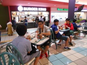 マイクロネシアモールでは、自由班で、それぞれが買い物を楽しみました。モールには70店舗以上のたくさんの専門店が入っています。グアムならではの、マカダミアナッツやチョコレートなどもあって、皆最終日の買い物が充実していたようです。 「英語でコミュニケーションがとれ、よかったです」「楽しいので、もっと時間がほしいくらいでした。」「買い物をしながら、外国の雰囲気が伝わってきました。」 などの感想が多く挙がっていました。