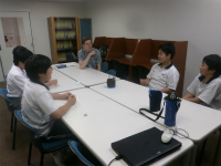 Hello, we are ESS. We practice English with Michael sensei every Wednesday. But we aren’t doing serious things, we usually do “Topic conversation” at the beginning. In this game, first we write topics we want to talk about on the cards. Then someone picks up a card, and we talk about it. We can know many things about friends and teachers, so it’s very fun.