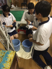 3年生のボランティア推進委員と有志の計16名で、桜町聖ヨハネホームへボランティア活動に行ってきました。3年生は今回が最後の参加です。2グループに分かれて車椅子と来客用スリッパの掃除を行いましたが、スムーズな動きで早めに終えることができました。次回、2学期は1、2年生の多数の参加を期待しています。(ボランティア推進委員会 委員長)