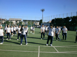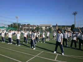 我々赤組は、今まで全力で競技の練習をしてきました。今年から、チームパフォーマンスの朝練を始め、去年よりも素晴らしい踊りを目指しました。昨年から行われている縄跳び推進プロジェクトも、AB組とCDE組のチームワークを高めるために、積極的にすすめています。本番は、全力で優勝を目指し、一人一人がスポーツ大会を楽しめるよう、頑張ります。(3年)