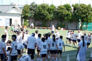 私たち白チームは、縄跳び・チームパフォーマンスなど、スポーツ大会に向けて日々、練習を頑張っています。また、縄跳びの練習ではCDE組の友だちに声をかけたりして、チーム内の仲間との交流も深めています。予行演習では先輩達との圧倒的な力の差も見せつけられました。ここから本番までの少ない日数の中で全力を尽くし、優勝を目指して努力していきたいです。(1年A組白チームK・Y)