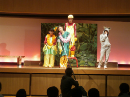 1CDEは『不思議の国のアリス』です。少女アリスが、ウサギを追いかけて不思議の国に迷い込み、しゃべる動物やトランプ兵などの様々なキャラクターたちが出会いながら冒険する物語。ルイス・キャロル原作のイギリス児童文学を、フレッシュな1年生が演じます。