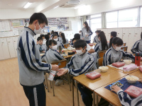 3月に行われるスキー教室では、学校生活委員は中心となって活動します。宿舎での食事の司会や起床・就寝時間の放送など、役割分担を行っています。また、この時期はインフルエンザの流行期なので、手洗い・うがい・手の消毒の呼びかけもしています。これからも学校生活がより良いものになるように活動していきたいと思います。(2年副委員長)