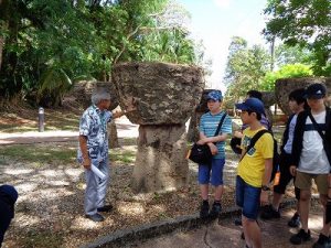 グアム学習2日目の島内観光で行った、スペイン広場とラッテストーン公園について書きます。スペイン広場は、かつてのスペイン総督邸の跡地で歴史を感じさせる場所でした。サンゴの白壁が強い日差しの青空に映えていました。ラッテストーンとは、石の柱のことで、何に使われたかは分かっていませんが、住居の土台だったという説や、宗教的な行事に使われたという説もあり、想像が膨らむ場所でした。これから、恋人岬に行ってきまーす‼︎